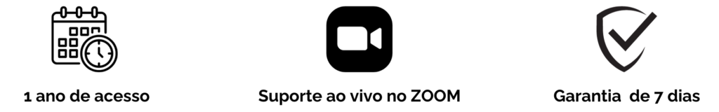 O suporte técnico está disponível através de nossa plataforma online e também pelo WatsApp durante o horário comercial. Os detalhes de contato e os horários de atendimento são fornecidos durante o curso. Além disso, você tem acesso a um grupo para trazer suas dúvidas e também nos encontros ao vivo você poderá sanar todas as suas dúvidas.
